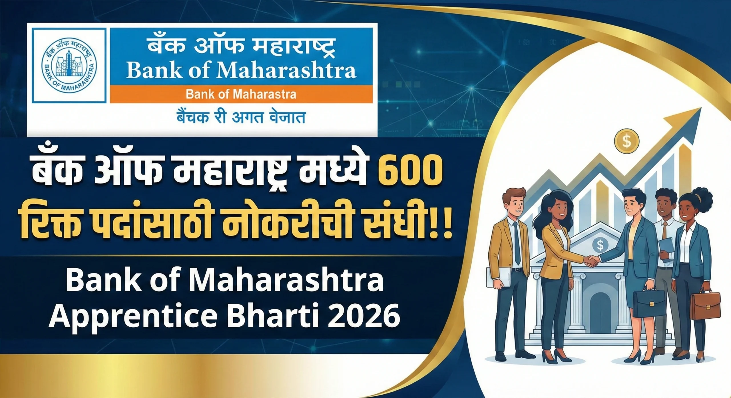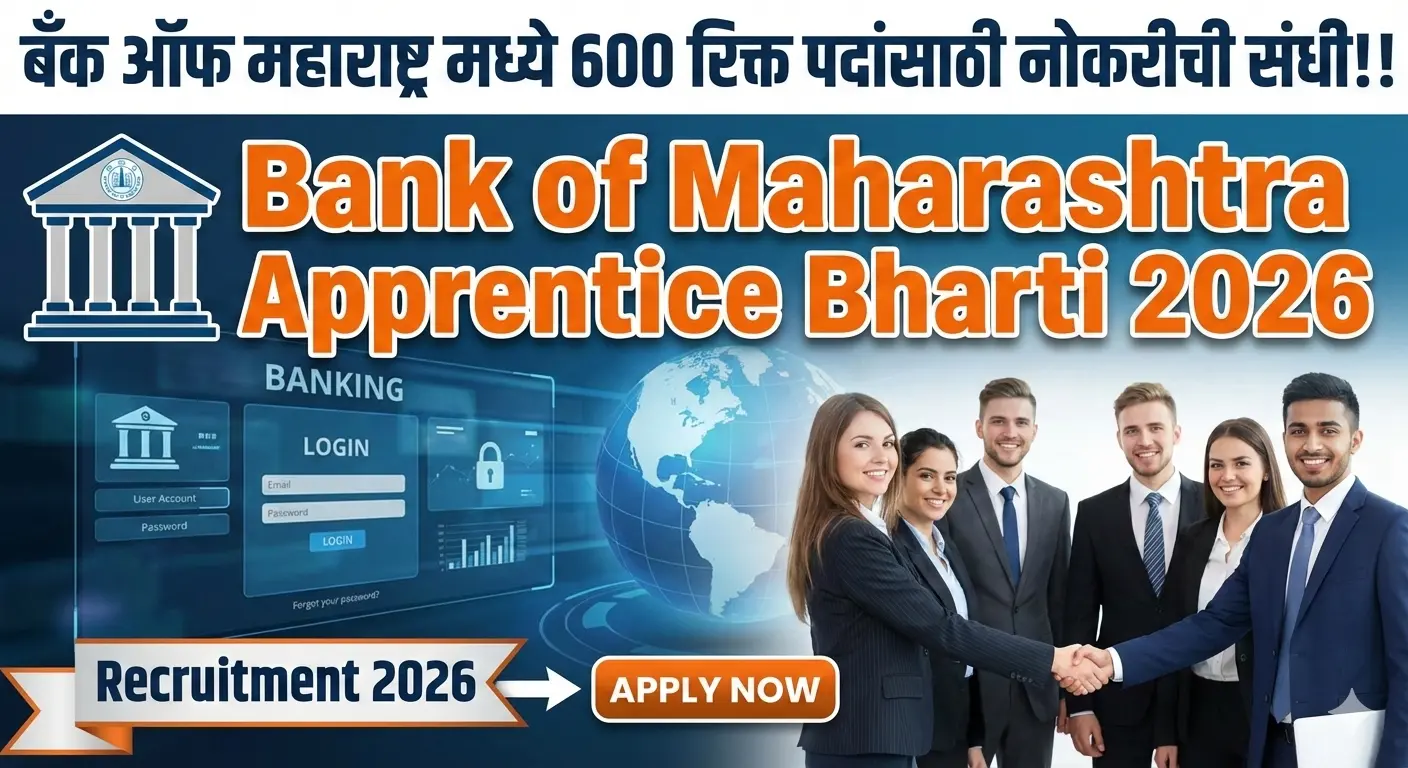 बँक ऑफ महाराष्ट्र मध्ये 600 रिक्त पदांसाठी नोकरीची संधी!! | Bank of Maharashtra Apprentice Bharti 2026